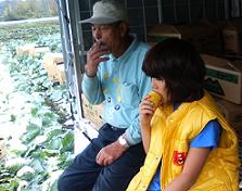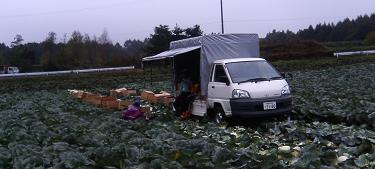 8月下旬。 早朝のレタスが一段落し、午前中にキャベツの出荷となる。 1日に何箱出すかは、デキ次第。 「出たとこ勝負」なのだ。 子どもも「手伝い」なのだ。 (本人はどう思っているかは不明だが。) 農作業の合間の一休み。 今年は とうもろこし もよいデキ。畑でほおばる。 これもウマい!!! ■フィッシングギアのショッピングへ! HOME 8/2005