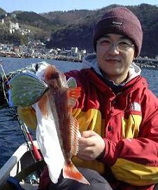 2/16 千曲川水系の渓流は本日解禁。 しかし、また、行ってしまいました。海・・ボート・・・。 今回は、カミさんが出産のために実家に帰っていることをいいことに 釣りを楽しみたいFの目論見にも半分加担している・・・。 2:30さいたま出発。5:00 網代着。 コンビニで朝めし。宇佐美まで行って、エサを仕入れ、6:30には 内田ボートさんへ。 7:00 状況を聞き、まず沖メのブイへ向けて出発。 サムい・・・ ちょっとウネリ・・・。 そして、仕掛けを降ろす。 深い!!! サビキ仕掛け 反応なし・・・・ カワハギ仕掛け 反応なし・・・ タイ仕掛け 反応なし・・・・ イケスの周りを場所変え、2度、3度、4度・・・・ 潮が流れてない・・・潮が澄んでる・・・初めての場所・・。 不利な条件下で、要領も得ない。 「これならカタイ!」という釣り方さえない。 そして11:00 イケス群の中へ入っても なぁんにもない〜 (ToT)/~~~ 「ボート降りて、堤防で根魚にする・・?」 「それもいいね」 アキラメました・・・・。 そのとき 「来たっ!!!!」 っとF。 深いとこから上げてくると、マダイ!! 「やった〜!」 35cm。 と、僕には、メゴっち・・・ やっと食いが立ってきた??? と思ったのもつかの間、やがてまた長い沈黙。 13:30 「そろそろ上がるか・・」 「そうしようか・・ん? キたっ!!」 とままた F。 30cmくらいのホウボウ! んで、僕にはキスがかかる・・・・。 キス狙いのときなら良型な22cm・・・ しかし、デカいの釣りてぇ〜 のだ。 そしてそのまま時間は過ぎていく。 14:15 Time Up!! ワカメをお土産に、帰途につく。 インフルエンザで寝込んでいるムスメを診るため、 家路を急ぐが、東名で事故・・・ 家についたのは19:30。ワカメの味噌汁がシミるようにウマ いのでした。 またまたリベンジを誓うのでした。