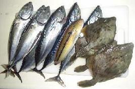 ●写真: マルソーダ、カワハギ(今回の挑戦:キュウセンを食ってみる!)、現場