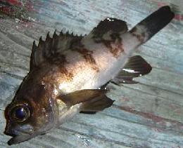 ポイントを見定めたところで、場所がえ。 久里浜・・・・・反応なし。 江奈湾・・・・・反応なし。 ここで、6:00. 鴨居のボート屋へ。 ・・・なんとかボートは出せそう。 身支度をし、受付を済ませ、河岸払い・・・というところで、 「ここは雪はふらねぇんだ!」 というボート屋のおじさんの言葉とは裏腹に雪が舞ってきた。 堤防から外海に出ると、「日本海」状態。 こんな予報の日にボートを出す人間は、我々だけ・・・・ (と思ったら、1時間ほど遅れて一人・・・) 魚の反応はといえば・・これまたシブすぎ。 メゴチ・・チビチビメゴチ・・・・ アタリもほとんどなし・・・ サムい、凍える、シバれる。 指が凍えて、アタリが取れないし。 2時間半でギブアップ。 10:00 上がって雪、露を払い、移動。 コンビニで暖を取る。 で、江奈湾へ移動。仮眠。爆睡。 「ノビタ」になっていたらしい・・・・ 14:30 氷雨降る中向かった先は、三崎。白灯。 小雨ではあるので、岸壁をライトタックルで攻めることに。 1/16ジグにパワーシラス。 暫く探っていると、キました。アナハゼ。プルプル。 キャストを繰り返す・・アナハゼのオンパレード。 アナハゼにも、なんだか種類があって、模様があるのと、ないのが いる・・・ 写真はどちらもアナハゼ。