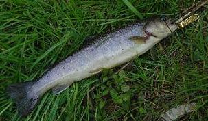 5/2 4:30 に起きるハズだった。起きたのは8:30・・・・・。 そのまま朝寝・・・気が付いたのは11:30・・・ どうしてこんなにネムいのか?? しししかし、なぜ目覚ましが鳴らなかったのか・・?? 最近多い。。。。 頭がすっきりしたところで、13:00川に行く。 ミノーをロストしてしまったので、スプーンで開始。 やはり、魚影がない。 鳥井原橋の上流のチョークストリームへ向かう。 50mほど上流・・瀬からタマリへ入るところで、 流れがヨれているところへキャスト。 そこで、やっと出ました イワナ!! このへんに着いているかも?! そう予想して、キャストを繰り返す。 少し遠投気味にして、ロスト覚悟でキャスト。 するとデました、ヤマメ 20cm。 こんどは下流から上流へ向かいキャスト。 アップストリームでのリトリーブになるが、チェイスしてくる 魚影を確認!! 次の一投でキましたイワナ。