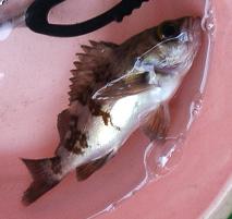 やっとかかった・・ふぅ・・である。 そして10:30ころまでには合計 8尾のメバル 最大21cm・・・ あまりにシブいメバルなので、船長が「イシモチへいきましょう」との配慮。 2人しかいないので融通がキク! 八景沖から猿島沖へ移動。 タナ60m。。。深い。。 1投げ目から「ゴゴン!」というツッこみ。 けっこうイイ引き!上げてくると「尺モノ」のイシモチ。 ちょっとグロい・・。 しかし、つれればウレしい。 1流し、2流し・・13:00までの間にイシモチ大小合わせ11尾。 その後帰る途中1時間あまりメバルをやったがチビカサゴのみ。 14:15くらいまでネバってくれたが、終了。 15:05 出発、16:10自宅着。 片付けて、サバいて、料理して、19:00バンメシ。 メバル唐揚げ、イシモチ竜田揚げ、メカブサラダ。 けっこうイケました。