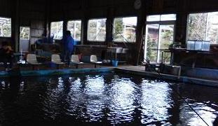 ここはヘラの池を始め屋内に、コイ釣り、キンギョ釣り の池があり、手軽に楽しめるのだ。 屋内の様子