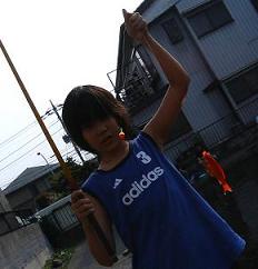 一発目開始早々キンギョ・・キンギョ・・・ 息子は1尾上げた後が続かない。 周りはけっこうデカいコイなんかを上げてる人もいる。 盛夏前の午後のひととき、まったり状態である。 息子は、あっち行ったり、こっち行ったりウロウロ。 キモチは分かるぞ。 キンギョ、フナ、ニゴイ、ヘラブナ・・ アイスしゃぶりながら、釣りに興じるのもいい。