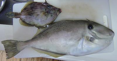■場所:長者ヶ崎 オオモリボート ■潮 : ■実釣時間:7:00〜12:00 ■天候:雨 ■風向き:北 ■波 :ちょいあり ■気温:少しサムい ■水温 :温かい ■ロッド:7ft ■ライン:PE 20 ■エサ :アサリ、オキアミ、サバ切り身 各種 ■Fish :ソーダ、カワハギ、ウスバハギ・・ ■写真: ウスバハギ、カワハギ
