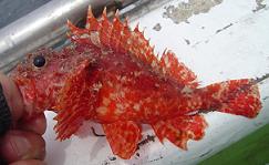 長居沖に向かう。まずはカサゴから。 荒崎沖で、開始。 エサはサバ短冊と、活きイワシ。 最初の30分は、アタリもなくツラい持間が経過する。 時々コマいアタリがあるが、上がってくるのはネンブツダイ、オニカサゴの子。