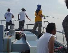 右舷 へ着座。 隣には 調布からきたという 「Bergman」さん というアメリカ人の方。 最初、英語で話しかけ、それに答えてもらっていたが、 なんか日本語ぺらぺらじゃん・・・・・・・・・・・・・・・・・・・・ (^_^;) せっかく 英会話フィッシング できるかなぁ と思ったのにな・・。 なんやら、小田原 とかにもひょっこりいくらしい。 「おだわら ○○丸もいく。 ノりあい よやく すいてていいよ。ここは こんでる。 でもきょうは よやくいらない。すいてるよ。」 だそうだ。 そりゃ、ソロで釣り船に乗るくらいだから、日本語できるはずだぁな。 出船15分。平塚沖の潮目からキャスト開始。 しばらくノーバイト。 4流し目くらいから、シイラが見えるようになる!!! 大磯沖。 中規模の群れ。前方にキャストし、リトリーブ直後「ヒット!!」 (;`ー´)o/ ̄ ̄ ̄ ̄~ >°))))彡 やた! ひさしぶり!!この感触!!! 突っ込む!! ドラグが出る!! しししかし!!次の瞬間・・プーン・・・ 「切れた!!!!」 結び目がクルクルになってもどってきた。「アマかった!!」 ルアーももってかれた!! 10キャストしてない「ZipBait・・」あぁぁ・・。 (ToT)/~~~ 「さんねーン、どらぐきついね。」 By ばーぐまん。 はぁ・・。 さて、気を取り直し、キャスト開始。 日も差し、いかにもシイラ ふぃっしんぐ というかんじ!! 日焼け止め を塗り塗り、キャストを続ける。 鳥山などはなく、浮遊物もまばら。 潮目でシイラを見つけて、キャストしていくといった状態。 それでも、船中では 今日イチバンの122cmが上がる。 船の状態。