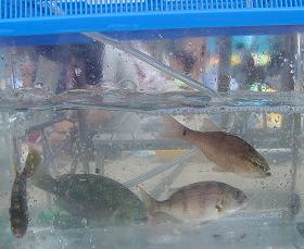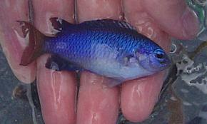 このスズメダイ、海の少し深場では、青紫に光ってきれいなのだが、