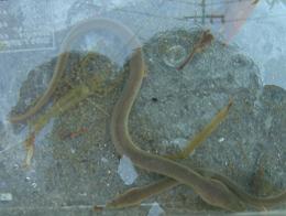 その後、川の流れ込みで、テナガエビとウナギと遊んで、