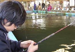 受付を済ませ、さ、イップクと落ち着くと、息子はもう釣れている・・。