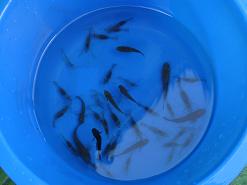 上げてくると、上のサビキに食っていたのは、本日最長の25cm。子バスみたい。