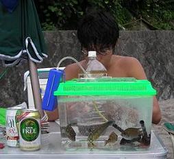 水槽へ確保し、ブクで活かし、鑑賞。