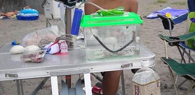 満足満足で、引き続き、人の少ない浜で泳ぎ、まだま遊ぶ・・。