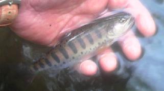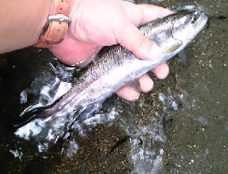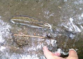 まるで教科書のようにサカナがデた!・・・・・といっても、チビヤマメ、16cmである。 でもいい。
