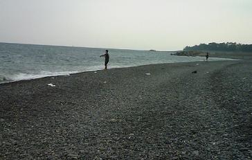 いったん海へ。4、5人のアングラーが。