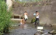 稲刈りのために水を止めた田圃の水路で ガサ入れをしだした。