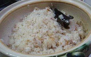 鯛を塩焼き。土鍋に3合のコメと昆布を敷き、水と約100mlのタイの潮汁、塩少々、