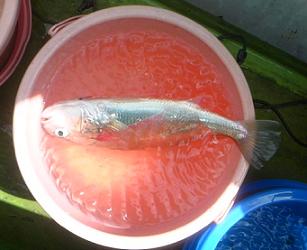 シメ、血抜き中のイシモチ。