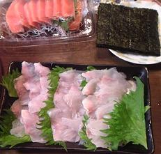 上げてスグにシめた大型のイシモチは刺身にして「手巻きの具」の一つになった。