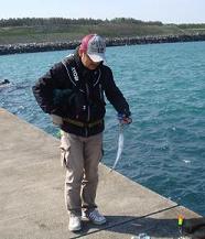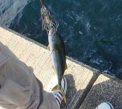 28gのジグであればなんとか飛んでいく。。と隣でやっていたおじさんが、イナダをゲット。