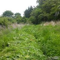 フツーの面積であれば楽勝なのだが、傾斜地で、足場が悪く、水路の水面まで