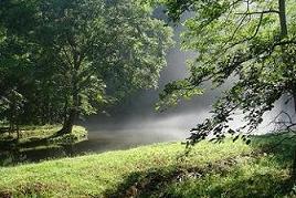 支流・・・里池!! 7:30 ・・朝靄で幻想的!! 里池からの流れ出し ・・・デそうでデなかった・。