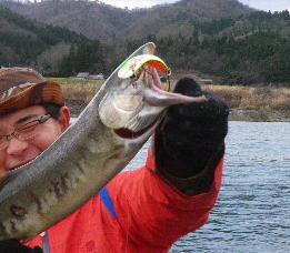 雨、アラレ、ミゾレが降るなか、ルアー替えたり、流し方変えたり、場所変えたり・・