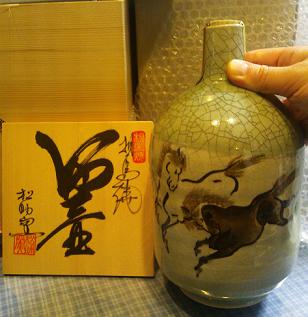 関川の酒屋で、相馬焼の酒壺が売っていた。