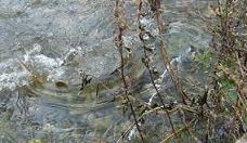 相変わらず増水気味。上流に向かい堰下の右岸へ。